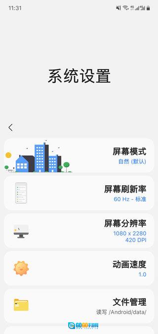 高级系统设定包含:屏幕模式设定、系统文件管理在/android/data/路径下的读写设置、系统界面的调节设置、移动网络模式设定、移动网络频段设定以及暗码功能设置。