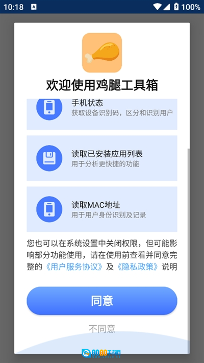第一步,前往本站安装鸡腿工具箱,点击“同意”。
