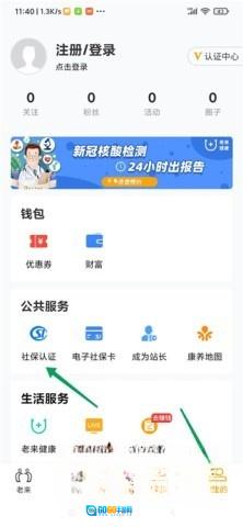 第三步,成功登录之后,点击“我的”选项卡,进入“生活服务”里的“社保认证”。