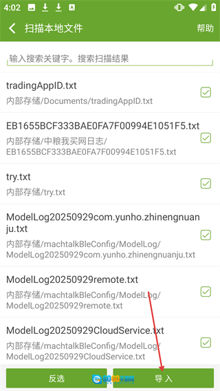 4、在本地文件扫描页面,选定想要导入的文件,接着点击【导入】按钮,就能完成文件导入操作。
