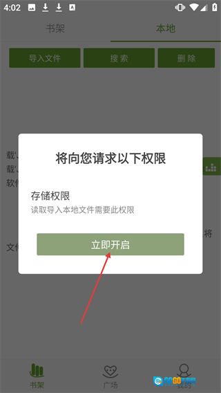 3、当应用向您请求存储权限时,只需点击【立即开启】,就能获取读取本地文件的权限。