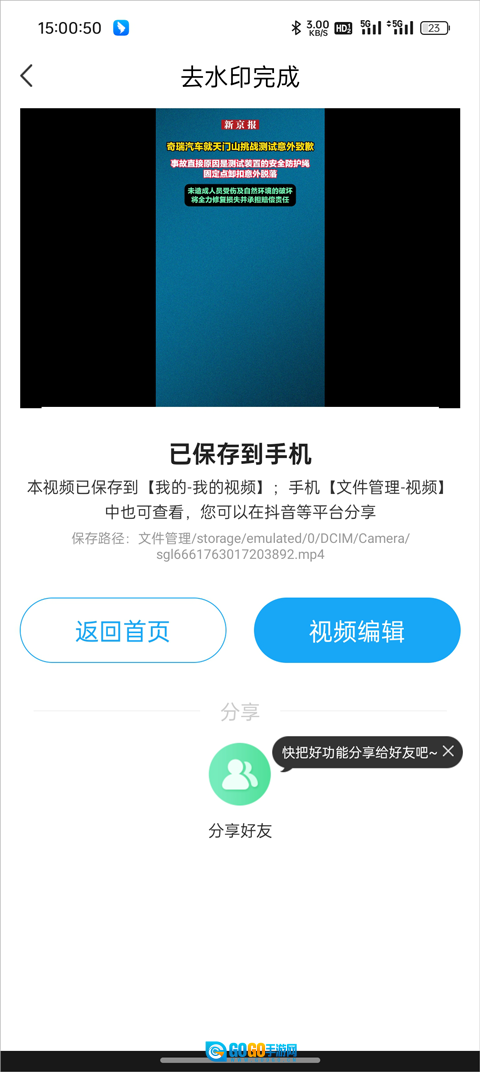4、完成解析后,就能成功去掉视频里的水印。