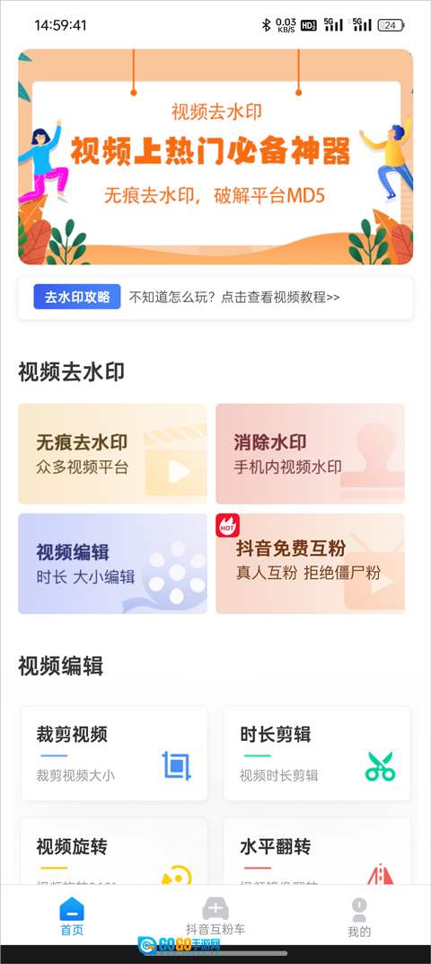 1. 启动考拉视频去水印App,在首页点击【无痕去水印】功能。