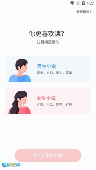 1. 启动软件,挑选男生或女生类型,开启阅读之行。