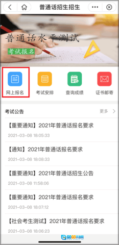 4、当进入【普通话水平测试】页面,点击【网上报名】,随即进入报名须知页面。仔细阅读相关内容后,勾选“我已阅读”,接着点击【下一步】,便可进入报名信息填写页面。