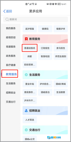 3、寻找到教育服务板块,然后点击普通话报名选项。