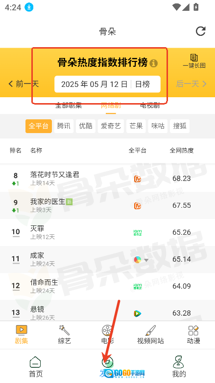 2. 进入“发现”板块,你可以查看近期的热度数据。依据这些数据的排名,挖掘更多新颖内容。