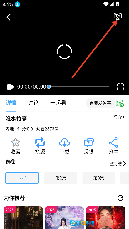 4、进入播放页面,点击右上角的tv投屏功能即可。