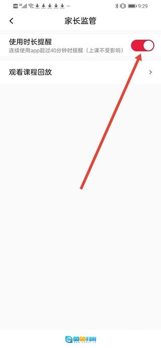 5、来到家长监管页面,然后把【使用时长提醒】的按钮开启即可。