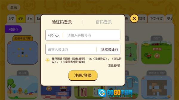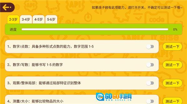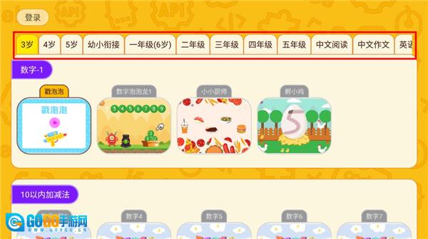1. 安装软件,进入软件后,在界面顶端选择孩子的年龄与学习阶段。
