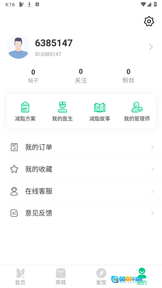 4、在主页面下方的“我的”板块中,能够查看诸如我的减肥方案、我的医生、减肥故事、我的管理师等内容。