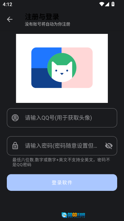 1. 开启次元世界软件库,随后输入QQ号以及密码(此密码即次元世界登录密码,可任意输入)来登录该软件。