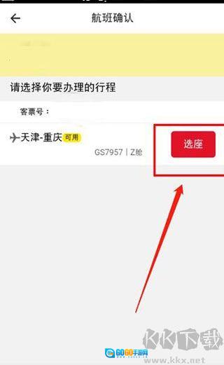 4、接下来的页面,我们就能看到需值机航班的信息。确认信息无误后,点击“选座”选项。