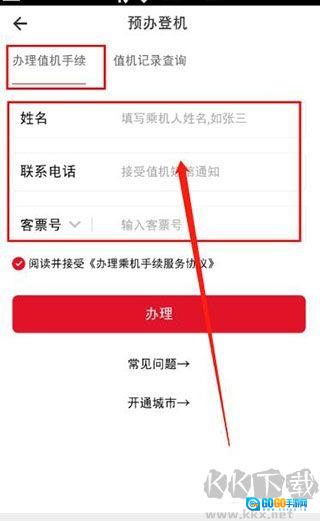 3、接下来,在办理值机手续的选项卡下,我们输入“姓名”“电话”“客票号”等信息,然后点击“办理”。