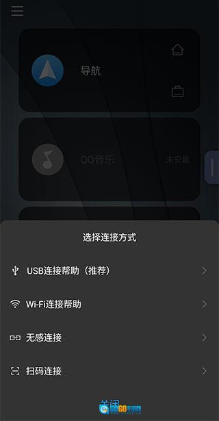 c、启动亿连驾驶助手用数据线连接手机和车机,手机进行USB调试后,即可实现手机互联。