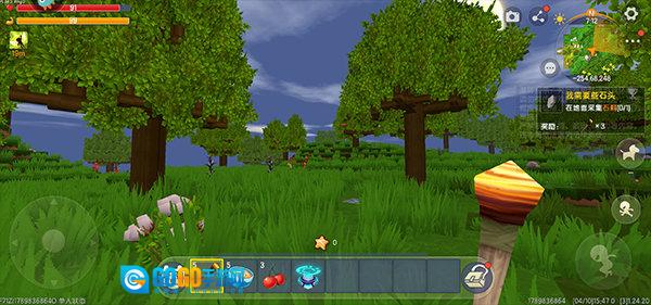 4、寻得材料后,把游戏视角转移至石头处,接着长按石头,材料便会自动获取。
