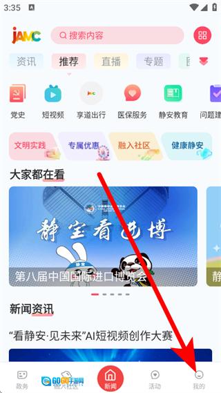 1. 开启“上海静安”应用,轻点页面底部的“我的”选项,从而进入个人中心界面。
