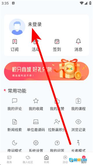 2. 于个人中心页面,点击“未登录”,随即进入登录流程。