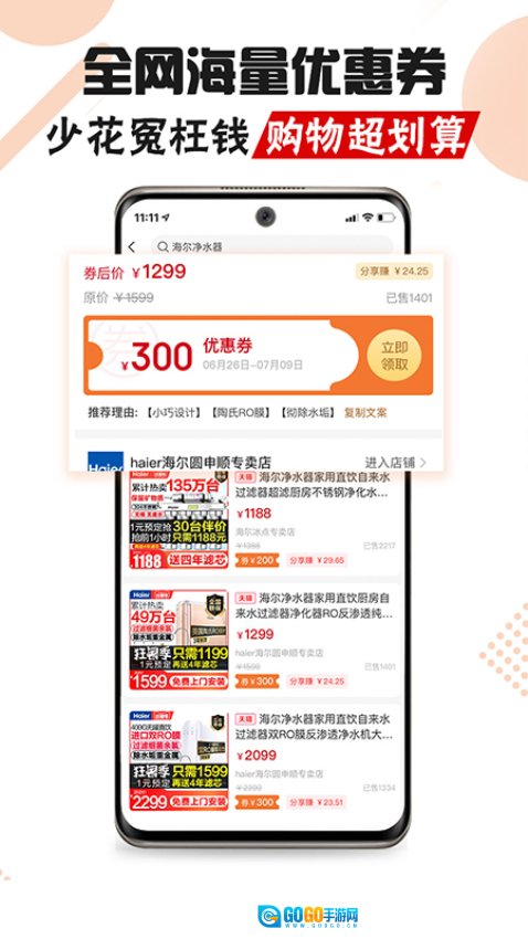 领取优惠券能帮助用户达成超高性价比的购物,实现省钱购物的目标。
