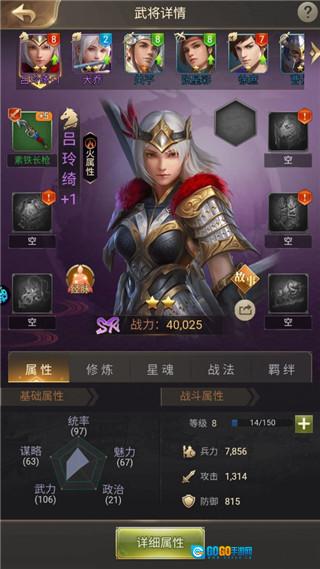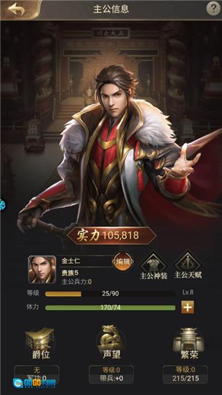5、在角色面板可以对主角及武将进行培养,包括升级、升阶、穿戴装备、装备强化都在这里;