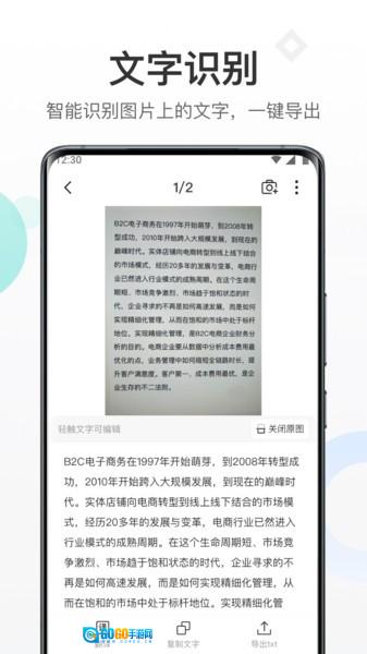 智能OC文字识别功能强大,可对作业、合同、文件、护照、驾照、书籍、文章等进行扫描,并转化识别为文本。