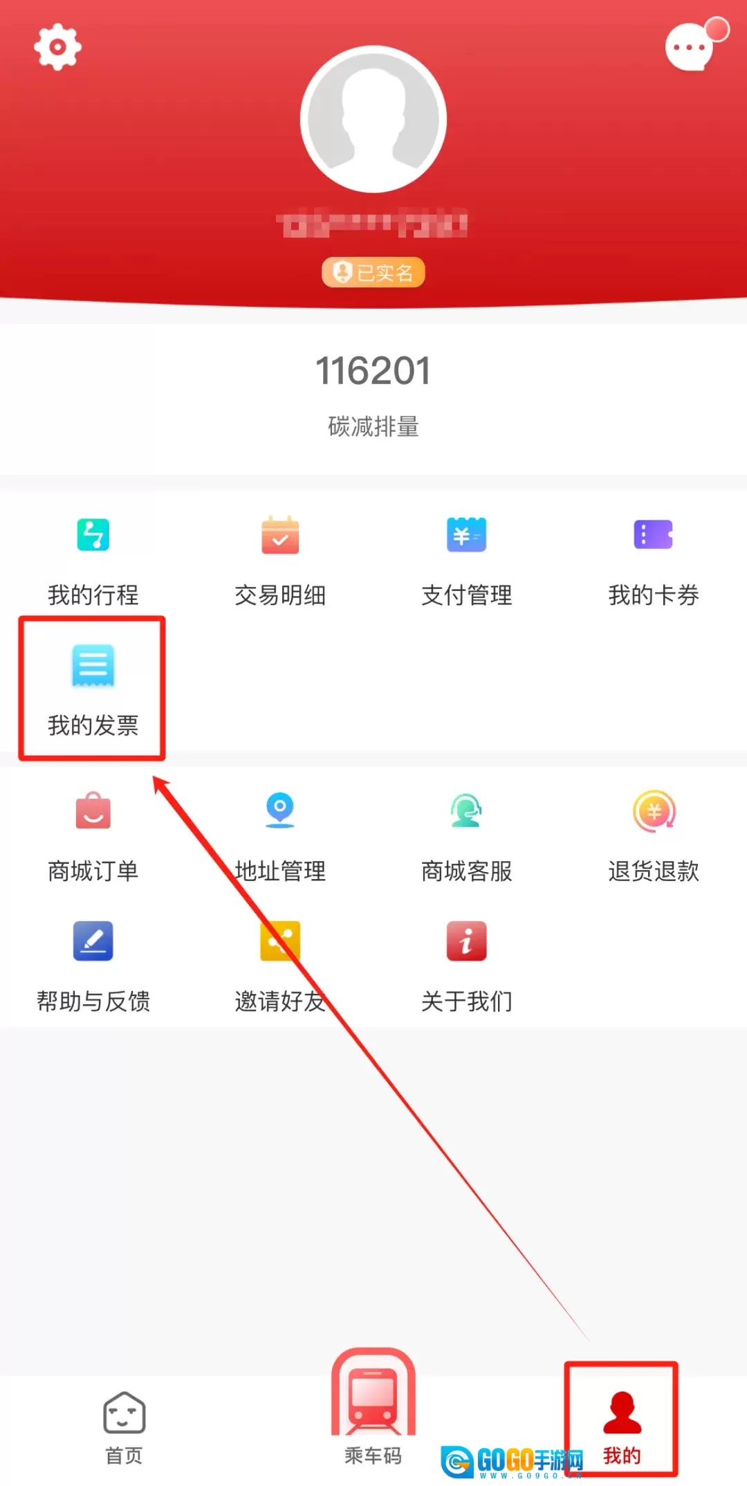 1. 开启常州地铁Metro应用,完成登录操作后,于【我的】页面里寻找到【我的发票】选项,点击进入该菜单。