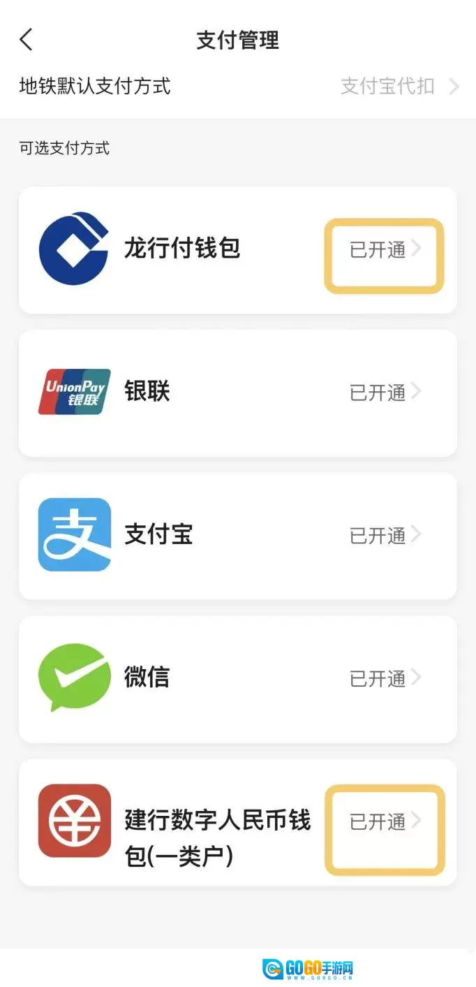 5. 成功开通之后,对【地铁默认支付方式】进行修改,选择【龙行付钱包】或者【建行数字人民币钱包】,随后提交更改。