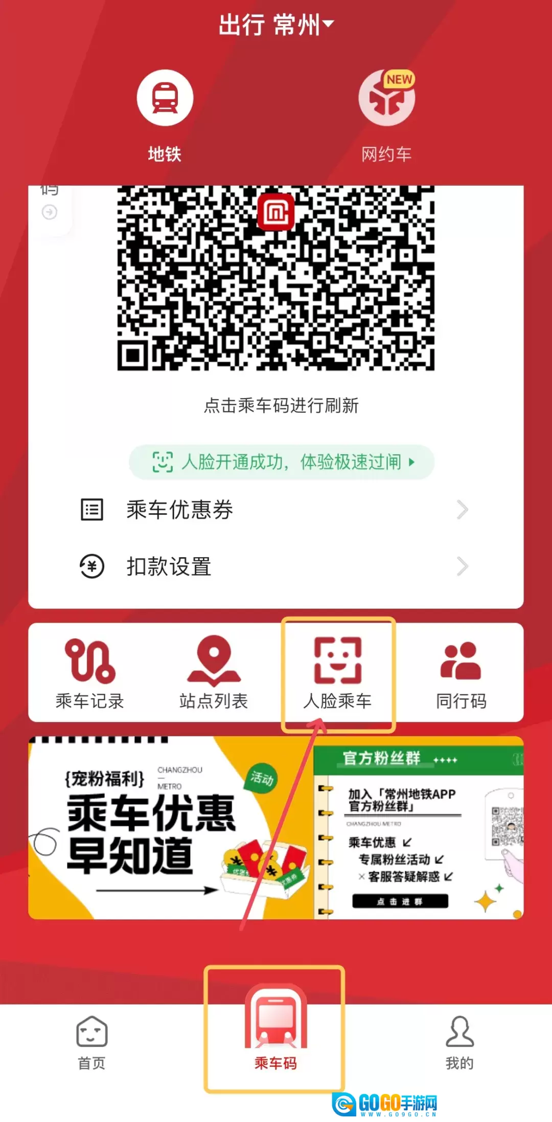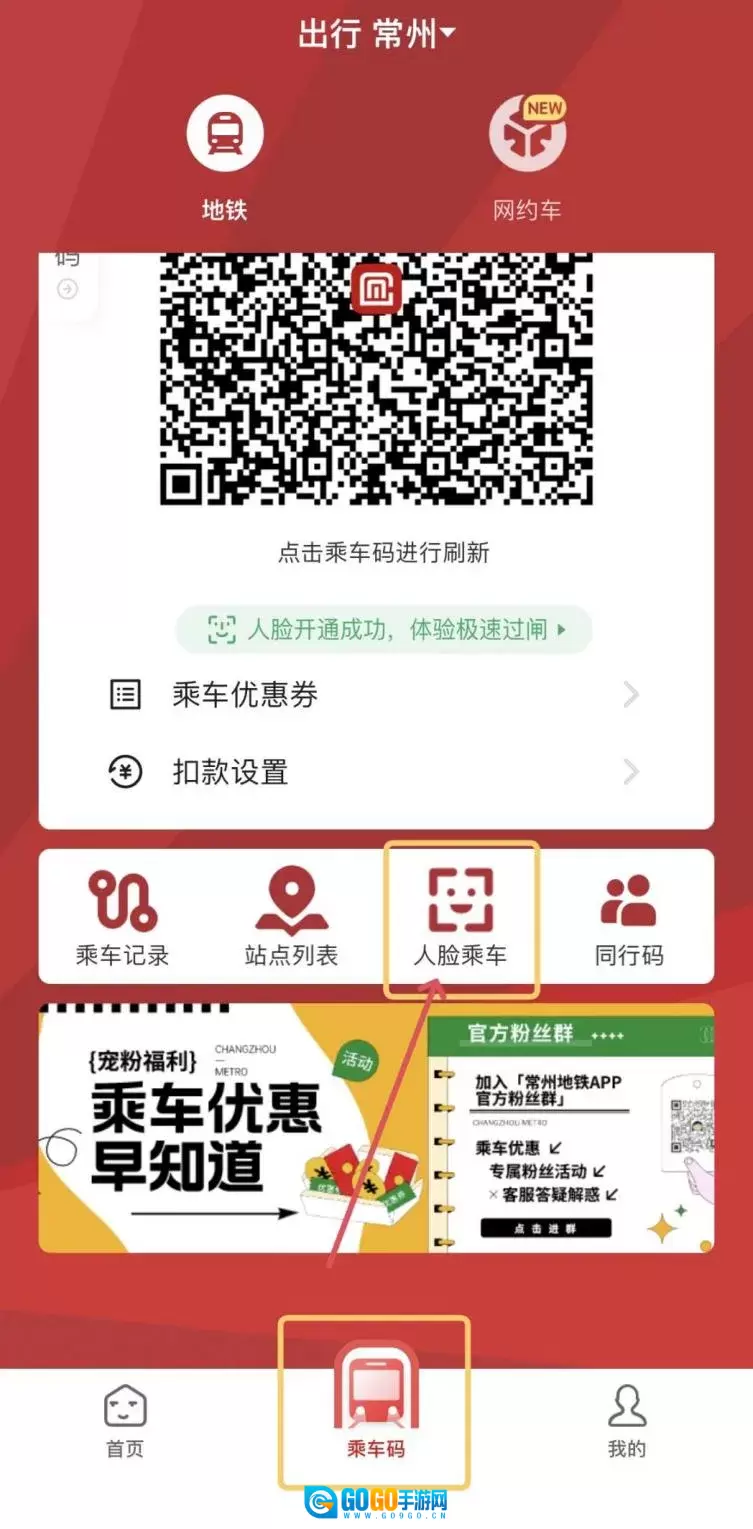 8. 乘客在【乘车码】页面的下方,点击【人脸乘车】功能。