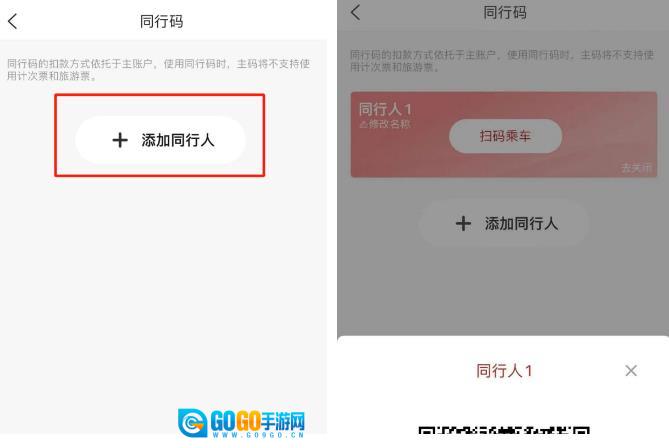 7. 在页面内添加同行人(无需实名),添加成功后便能刷码乘坐地铁。