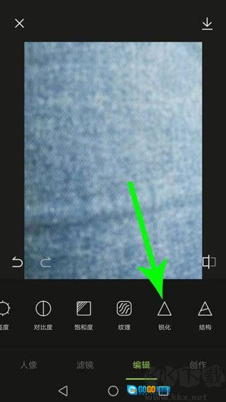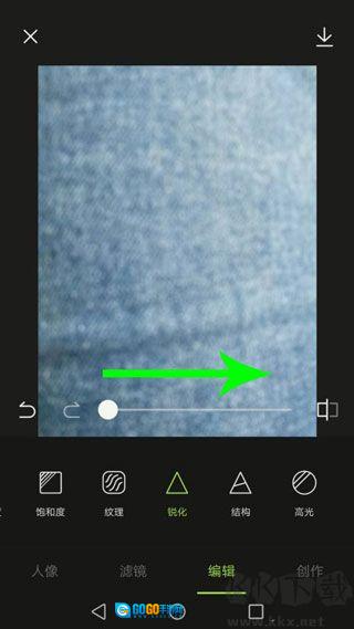 5、优化完毕以后向左滑动工具栏,然后点击“锐化”。