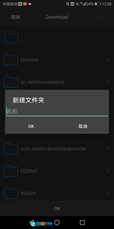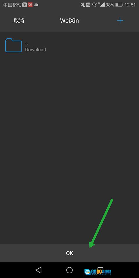 5、在弹出的页面中选择到手机上的具体文件目录下,也可点击右上角的【+】进行新建文件夹目录