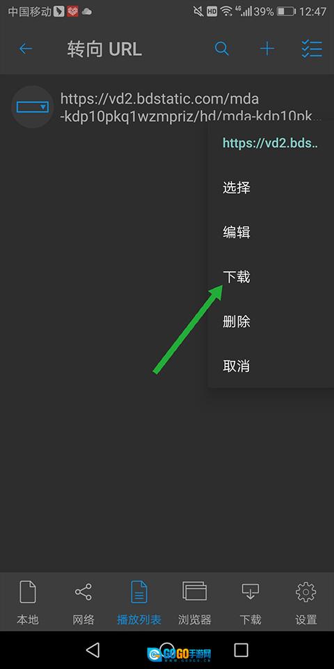 4、用户长按该视频文件,在弹出的下拉选项中选择【】