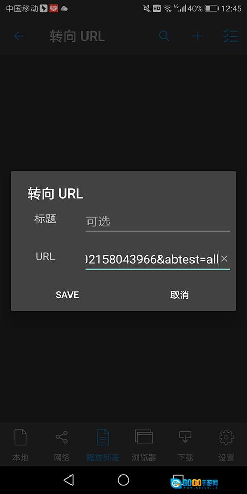 2、在弹出的输入窗口中,将所需视频的链接复制到URL处,并点击【SAVE】