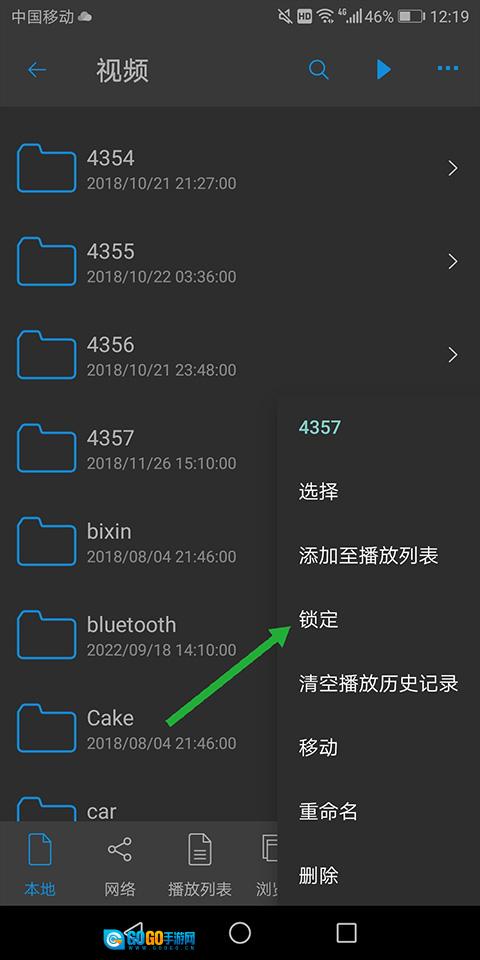 3、加密方式就是长按这个文件目录,在弹出的下拉选项中选择【锁定】
