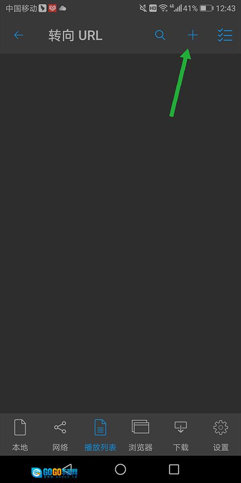 1、在主页中点击底部【播放列表】进入新页面后点击页面上部的【+】(下图绿色箭头所指区域)