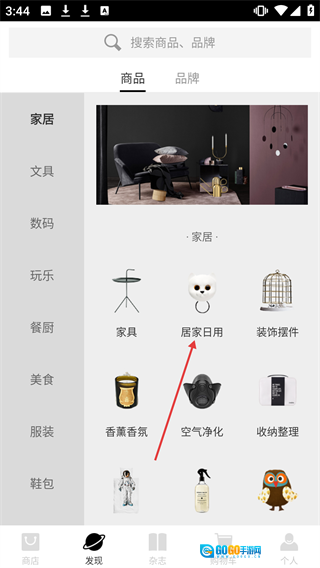 1. 于发现页面的家居分类里,点击【居家日用】,从而进入分类页面。