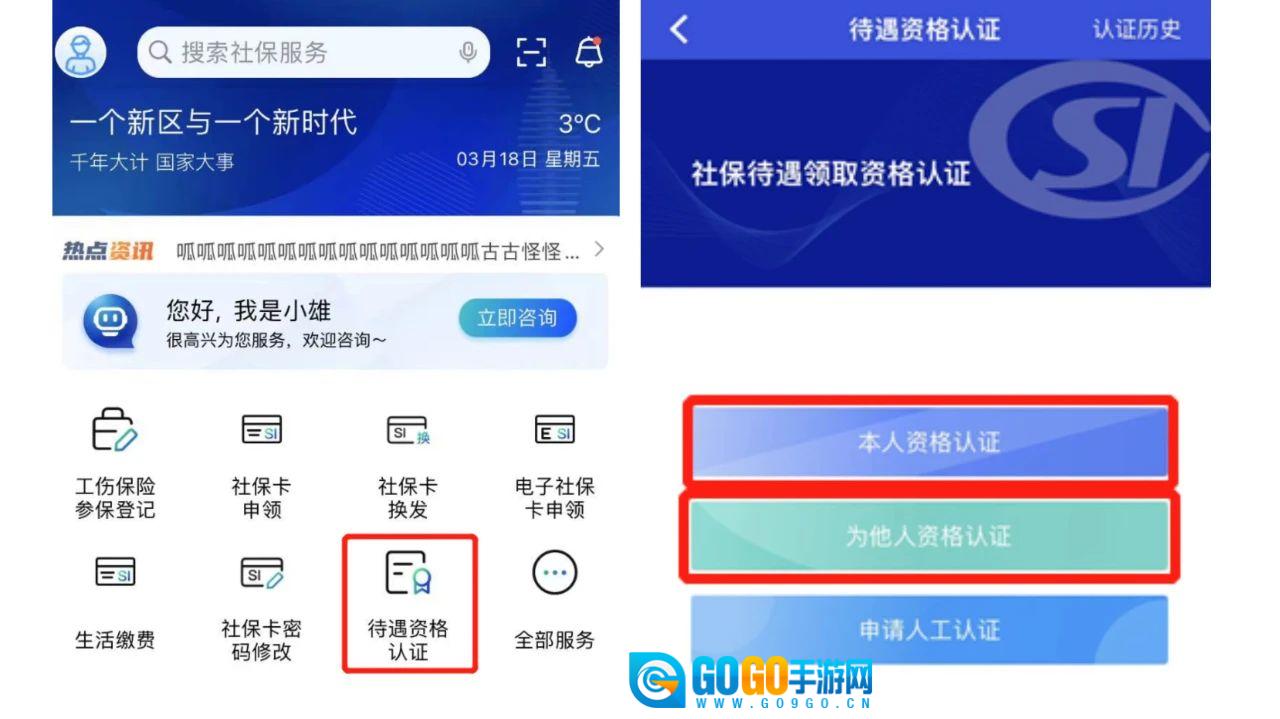 第二步:点击首页“待遇资格认证”。选择“本人资格认证”或“为他人资格认证”。