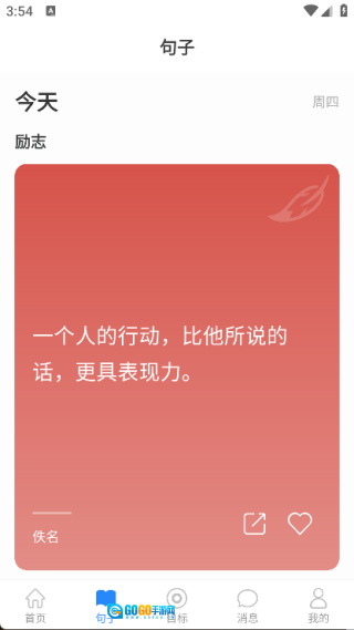 3. 点击页面底部的“句子”,就能查看今日励志句子。