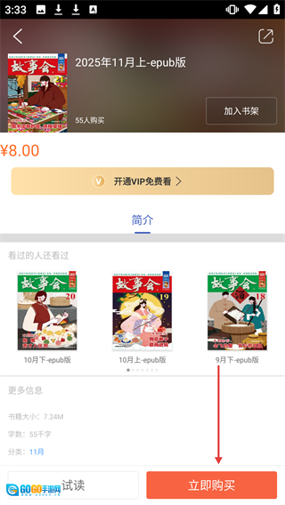 2、于2025年11月上旬的epub版详情页,点击【立即购买】按钮。