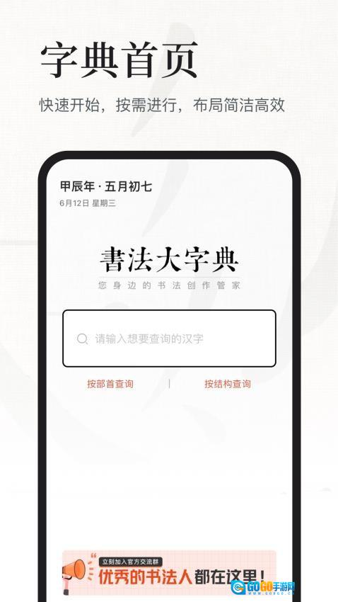 书法大字典手机版,是一款专门为书法爱好者精心打造的书法字典查询软件。借助这款软件,用户能够便捷地查询各类书法字体的文字书写样式,像行书、草书、隶书、篆书、楷书等。如此一来,众多书法爱好者便能更好地掌握书法汉字的书写步骤,进而更有效地开展书法练习。 书法大字典免费版为用户提供了极为便捷的查询模式,支持多字查询、部首查字、结构查字等多种方式,方便用户快速找到自己想要书写的书法汉字,深入了解详细的书写结构,助力众多书法爱好者掌握正确的书写操作。有需要的用户赶快行动起来吧!今后书写汉字将会变得更加轻松。