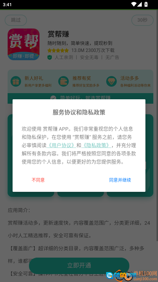1. 开启软件,阅读“服务协议和隐私政策”,点击“同意并继续”,随后进入。