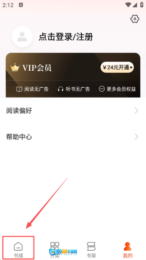 2. 寻觅到“书城”选项并点击,踏入丰富多样的小说平台,探寻精彩纷呈的内容。