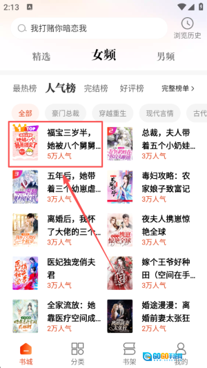 3、点击进入“人气榜”栏目,在此浏览当下热门作品,能轻松发现广受欢迎的书籍。