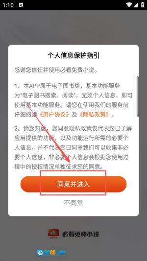 1. 轻点“同意”按钮,您便能迅速进入应用,开启精彩纷呈的阅读体验。