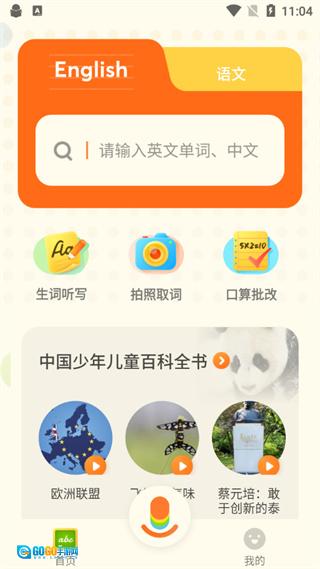 * 英文查词:英文部分包含《义务教育英语课程标准》所规定的词汇以及《牛津小学词典》的内容。其释义是专门为少儿用户打造的,与该年龄段用户的学习理解能力和知识储备相契合。而且,针对每一个单词,都收录了真人发音以及配套的图片词典。