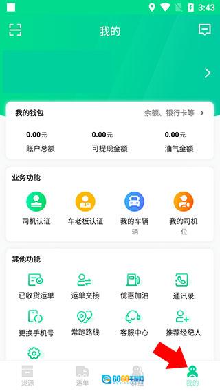 1、第一步,下载并开启成丰货运司机端,接着点击屏幕下方的“我的”。