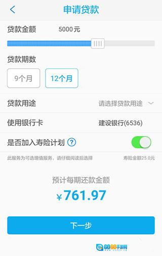 4、接下来,选择贷款金额、期数、用途,以及是否加入寿险计划等,具体可参照下图。