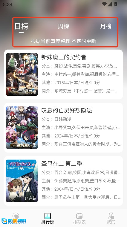 2、亦或进入排行榜,可直接查看日榜、周榜、月榜的内容。