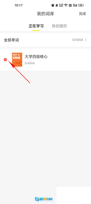 3、执行换书操作:返回至我的词库,点击右上角的编辑按钮,将原有词库删除,以此完成换书。