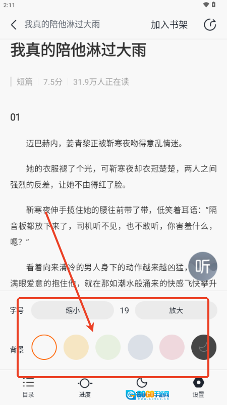 5、在此处,你还能选择多样化的阅读方式,例如听书、自动翻页,此外,还具备调整背景颜色等实用功能。